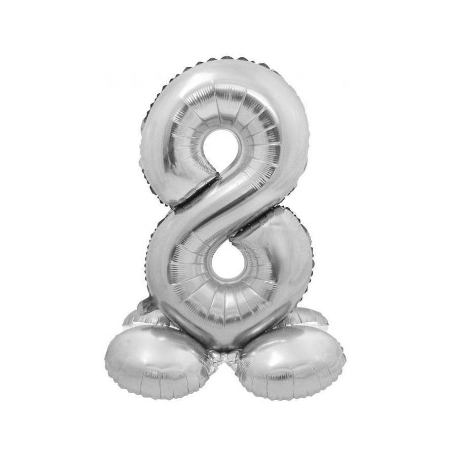 Silver, Ezüst 8-as szám fólia lufi talppal 72 cm