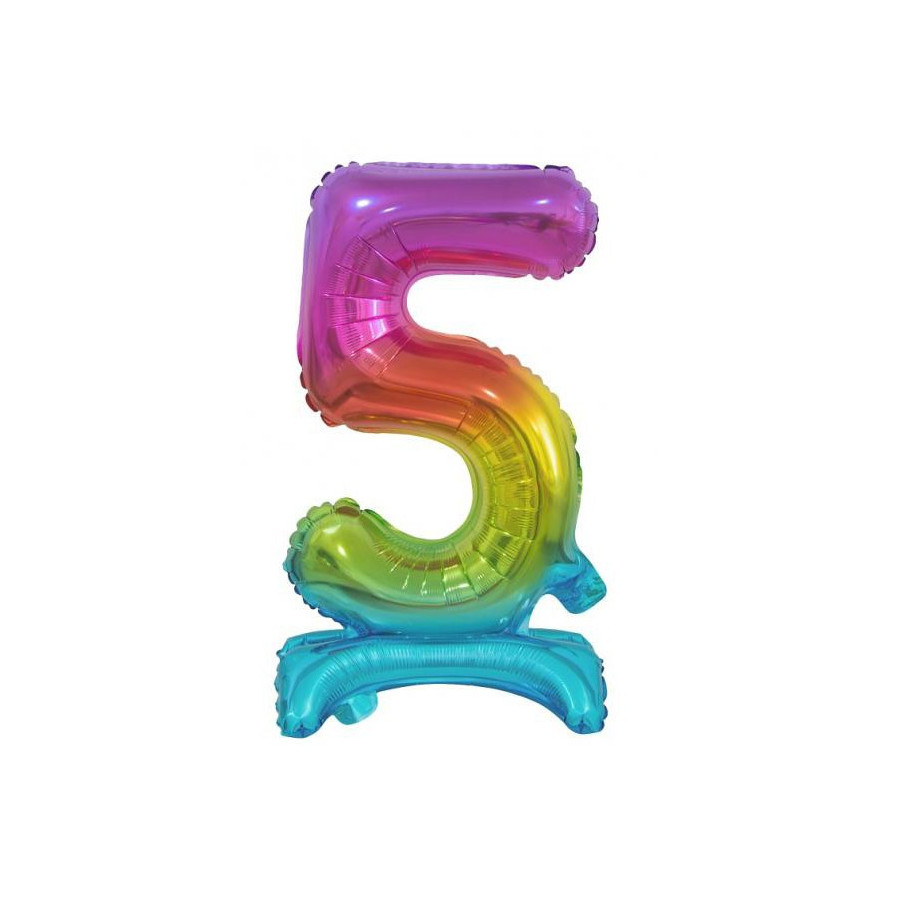 Rainbow, Színes mini 5-ös szám fólia lufi talppal 38 cm