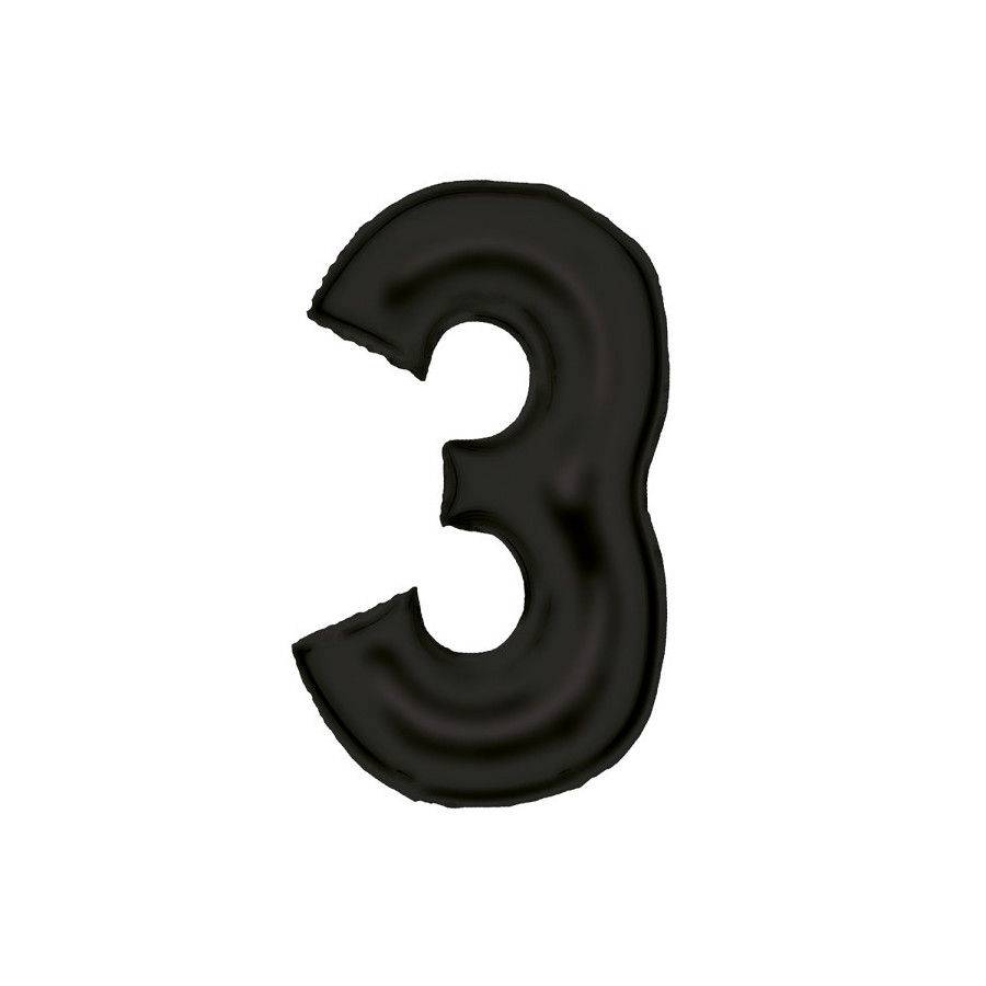 Lustre Black, Fekete 3-as szám fólia lufi 86 cm