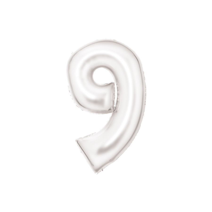 Lustre White, Fehér 9-es szám fólia lufi 86 cm