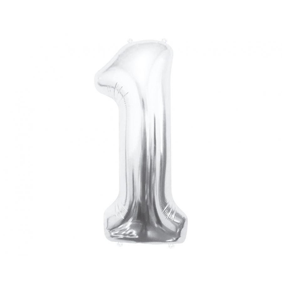 Silver, Ezüst 1-es szám fólia lufi 85 cm