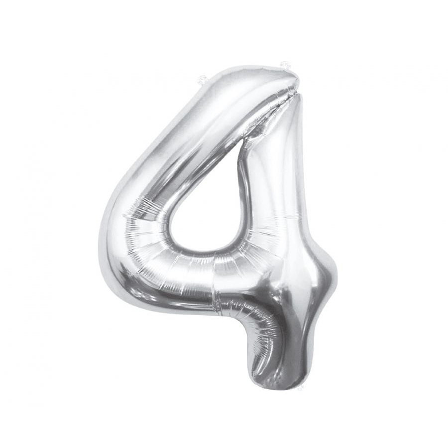 Silver, Ezüst 4-es szám fólia lufi 85 cm