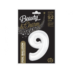 B&C White, Fehér 9-es szám fólia lufi 92 cm