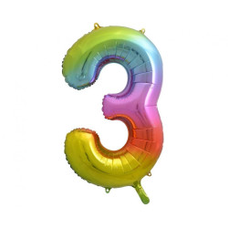 Rainbow, Szivárvány 3-as szám fólia lufi 85 cm
