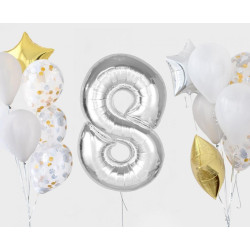 Ezüst 8-as Silver szám fólia lufi 92 cm