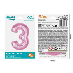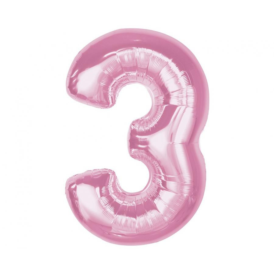 Rózsaszín 3-as Light Pink szám fólia lufi 92 cm