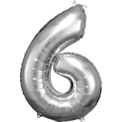 Silver óriás szám fólia lufi 6-os, 86*58 cm