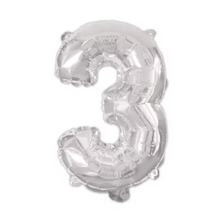 Silver, Ezüst 3-as szám fólia lufi 95 cm