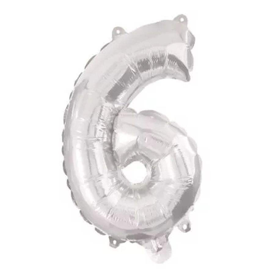 Silver, Ezüst 6-os szám fólia lufi 95 cm