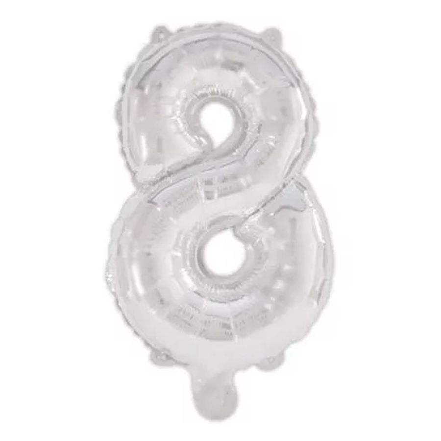 Silver, Ezüst 8-as szám fólia lufi 95 cm