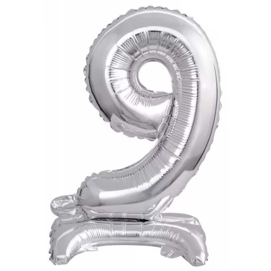 Silver, Ezüst mini 9-es szám fólia lufi talppal 38 cm