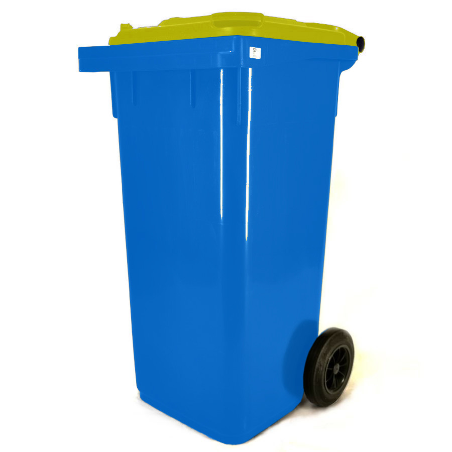Több színben kapható háztartási szemetes kuka. Űrtartalma 120 liter. Gépi ürítésre alkalmas. Terhelhetősége max. 60 kg.