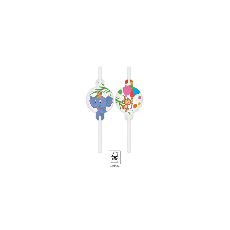 Jungle Balloons, Dzsungel papír szívószál, 4 db-os szett FSC