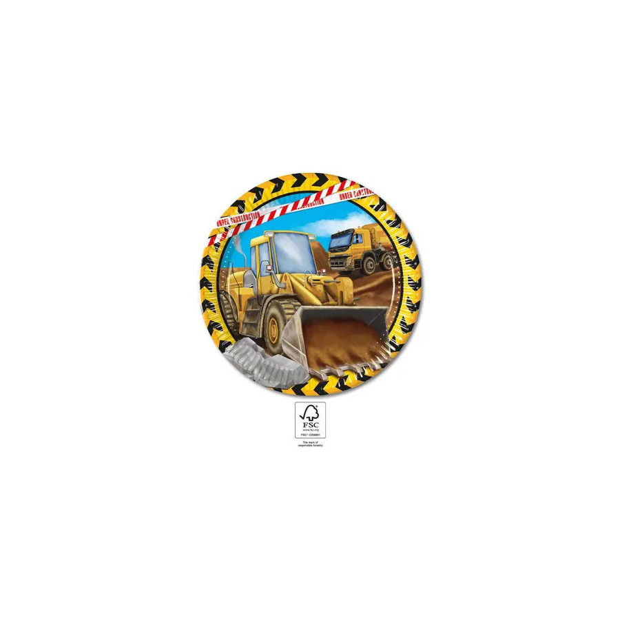 Construction, Építkezés papírtányér 8 db-os 23 cm FSC