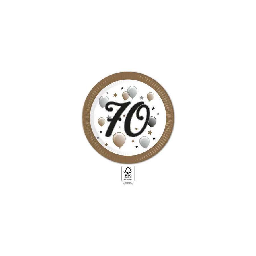 Milestone, Happy Birthday 70 papírtányér 8 db-os 23 cm FSC