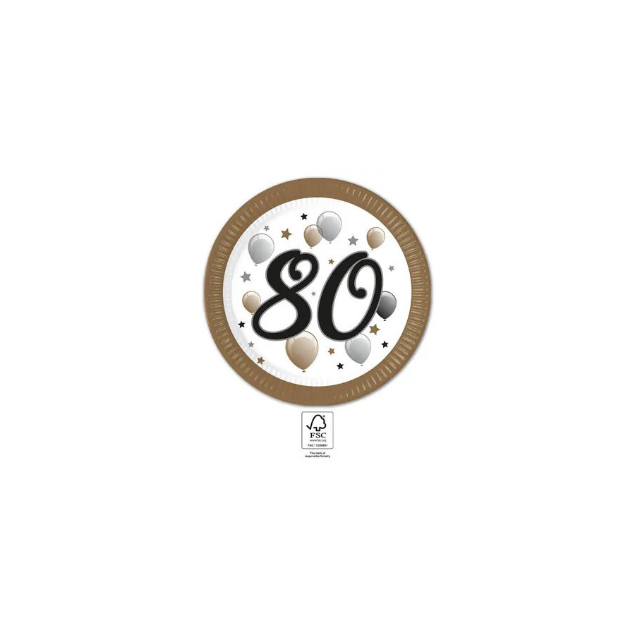 Milestone, Happy Birthday 80 papírtányér 8 db-os 23 cm FSC