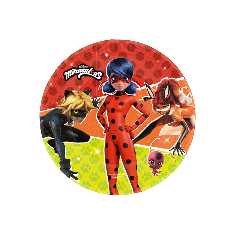 Miraculous Ladybug, Katicabogár és Fekete macska kalandjai papírtányér 8 db-os 23 cm