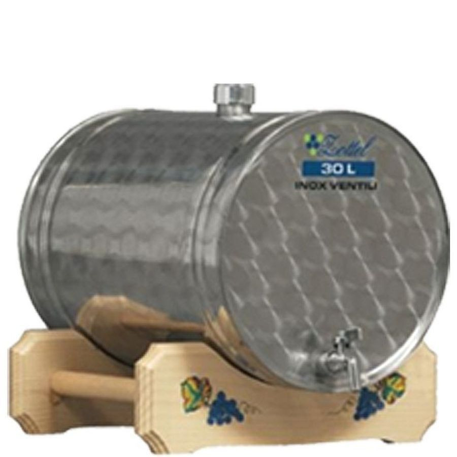 Tartály fekvő 30L fa állványon, rozsdamentes csappal Zottel