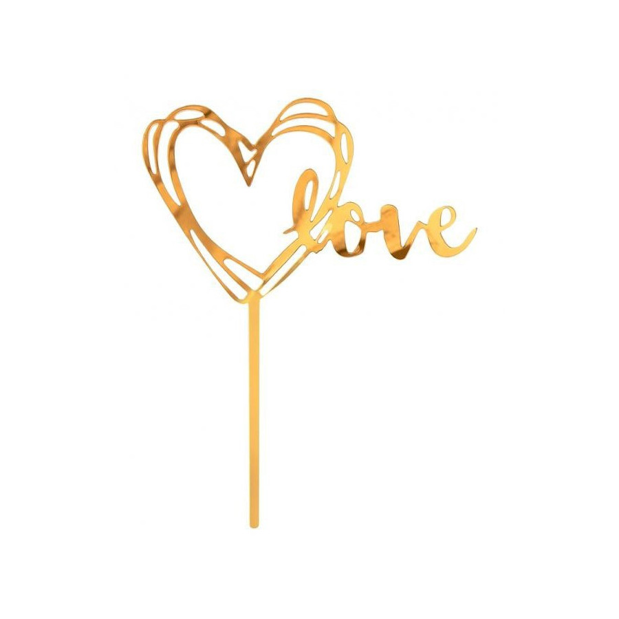 Gold Love, Arany Szív torta dekoráció 13 cm