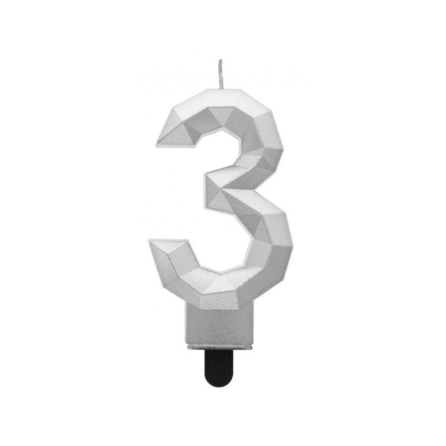 Diamond Silver Metallic, Ezüst számgyertya, tortagyertya 3-as