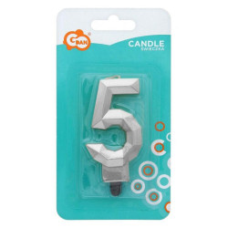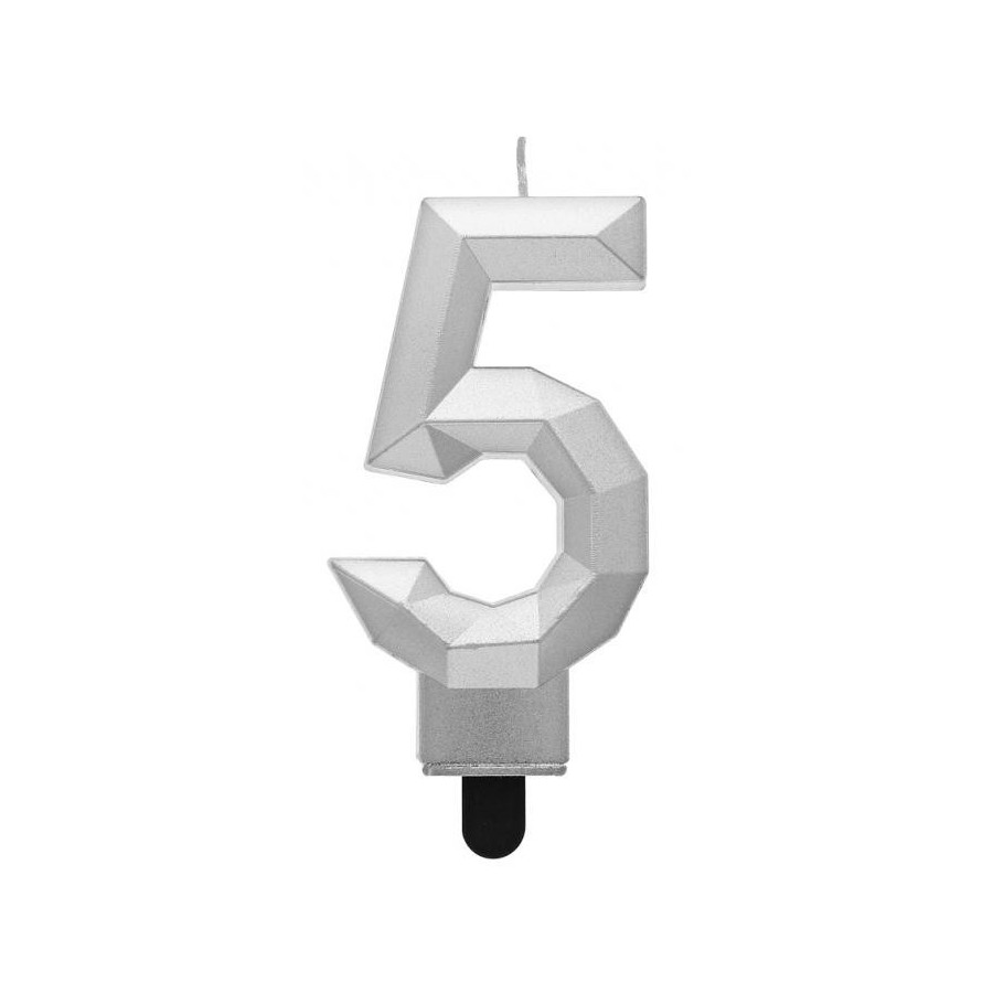 Diamond Silver Metallic, Ezüst számgyertya, tortagyertya 5-ös
