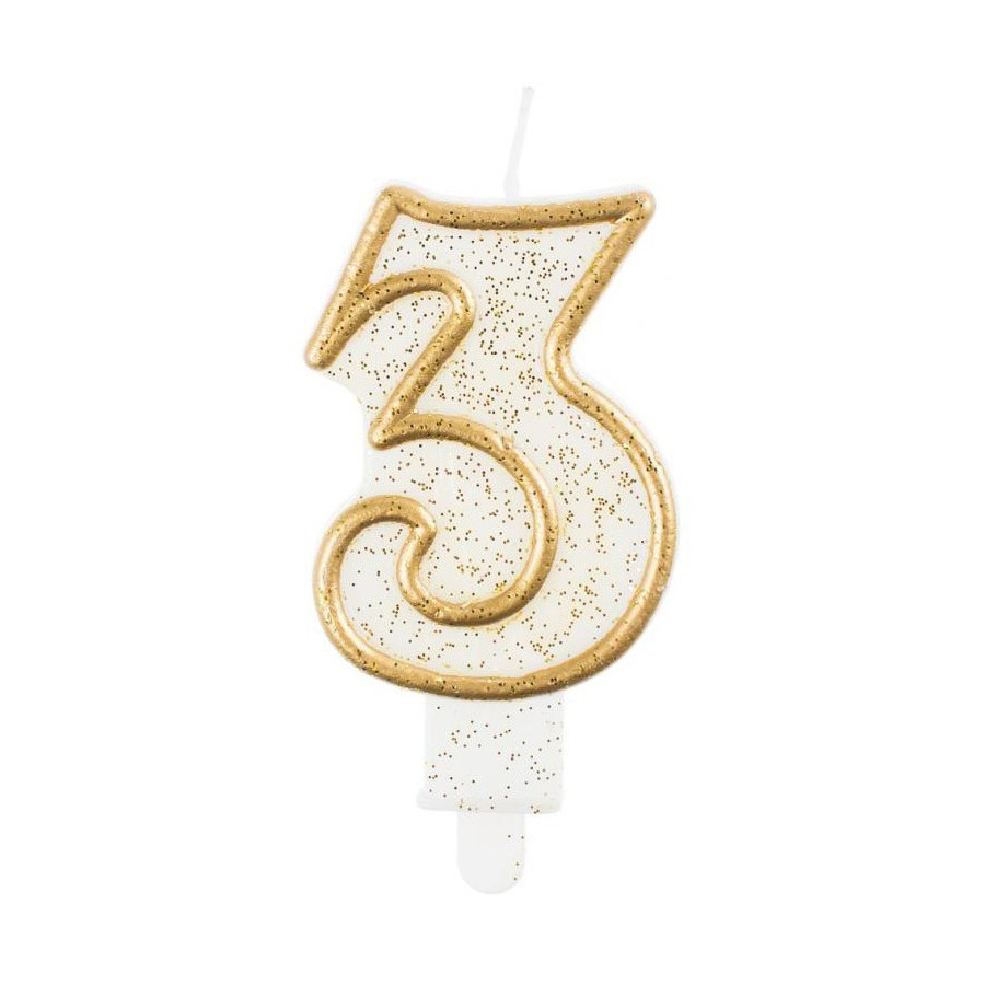 Gold, Arany csillámos számgyertya, tortagyertya 3-as