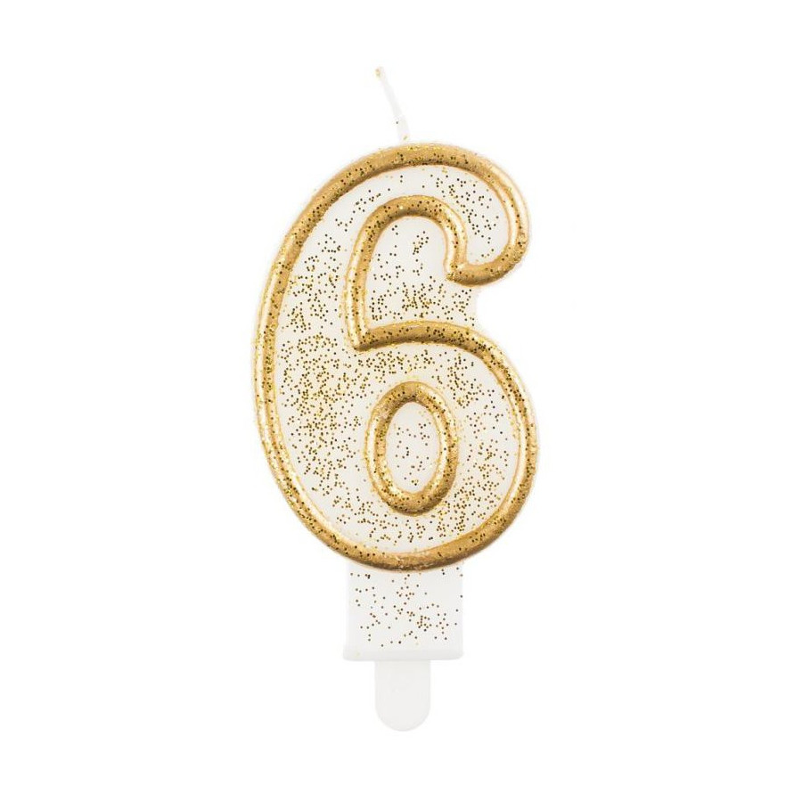 Gold, Arany csillámos számgyertya, tortagyertya 6-os