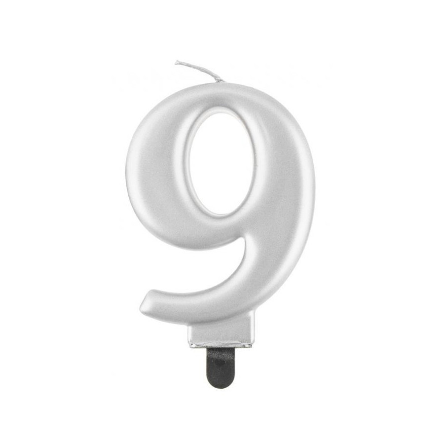 Silver Metallic, Ezüst számgyertya, tortagyertya 9-es