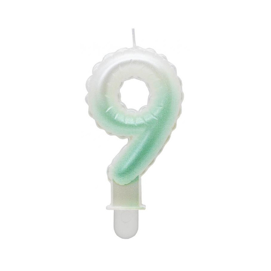 White-Green Ombre, Fehér-Zöld számgyertya, tortagyertya 9-es
