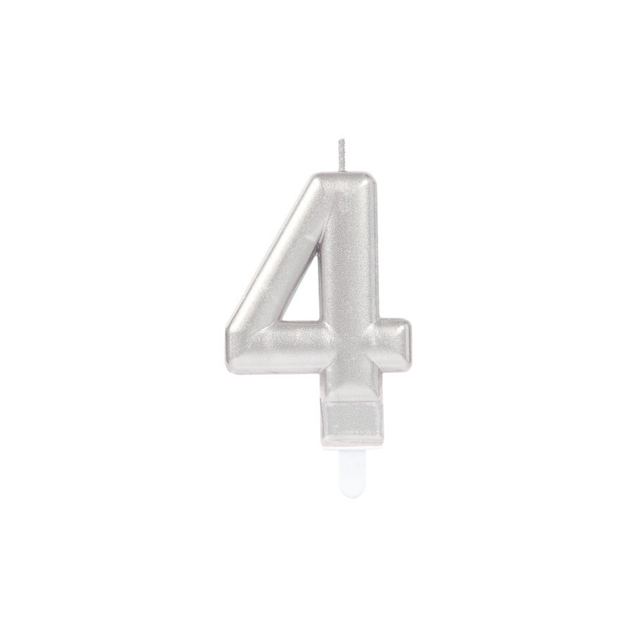 Silver Metallic, Ezüst számgyertya, tortagyertya 4-es
