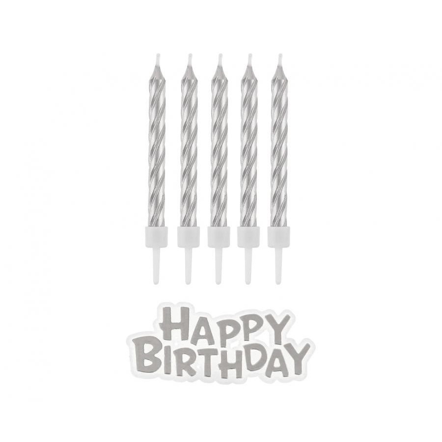 B&C Silver, Ezüst Happy Birthday gyertya szett 16 db-os