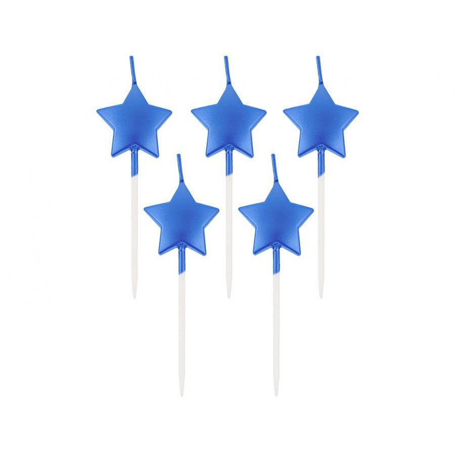 Metallic Blue Star, Kék csillag tortagyertya, gyertya szett 5 db-os