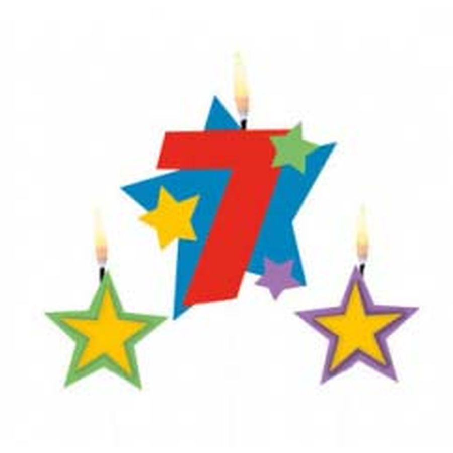 Színes 7-es számgyertya csillagokkal