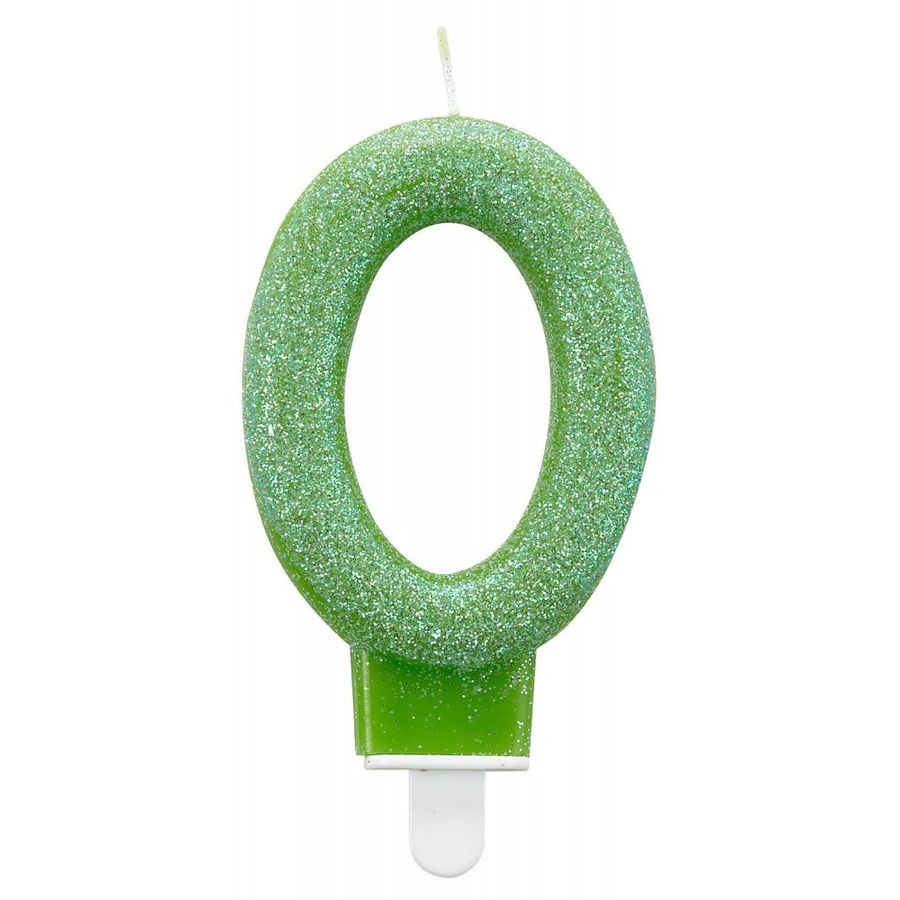 Színes csillogó tortagyertya, számgyertya 0-ás