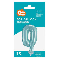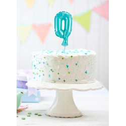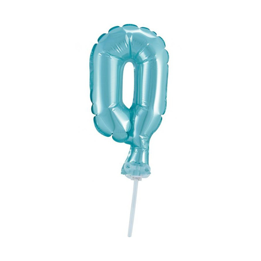 Light Blue, Kék 0-ás szám fólia lufi tortára 13 cm
