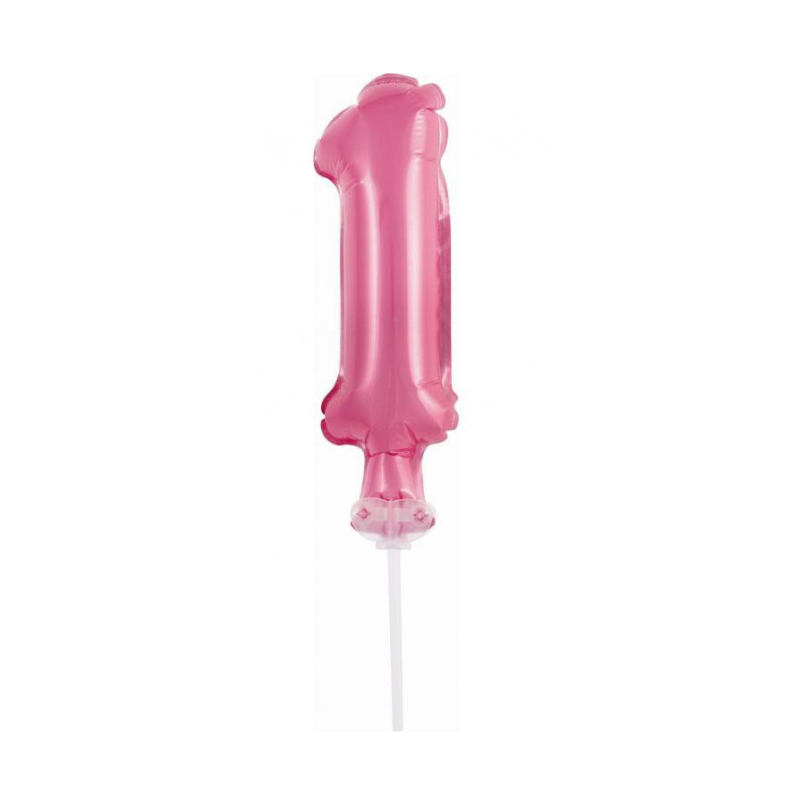 Pink, Rózsaszín 1-es szám fólia lufi tortára 13 cm