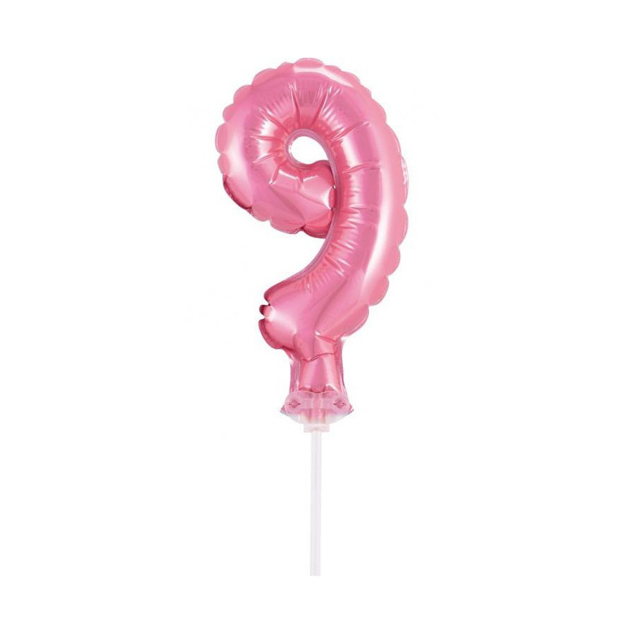 Pink, Rózsaszín 9-es szám fólia lufi tortára 13 cm