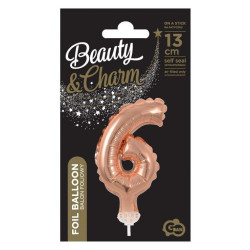 Rose Gold 6-os szám fólia lufi tortára 13 cm