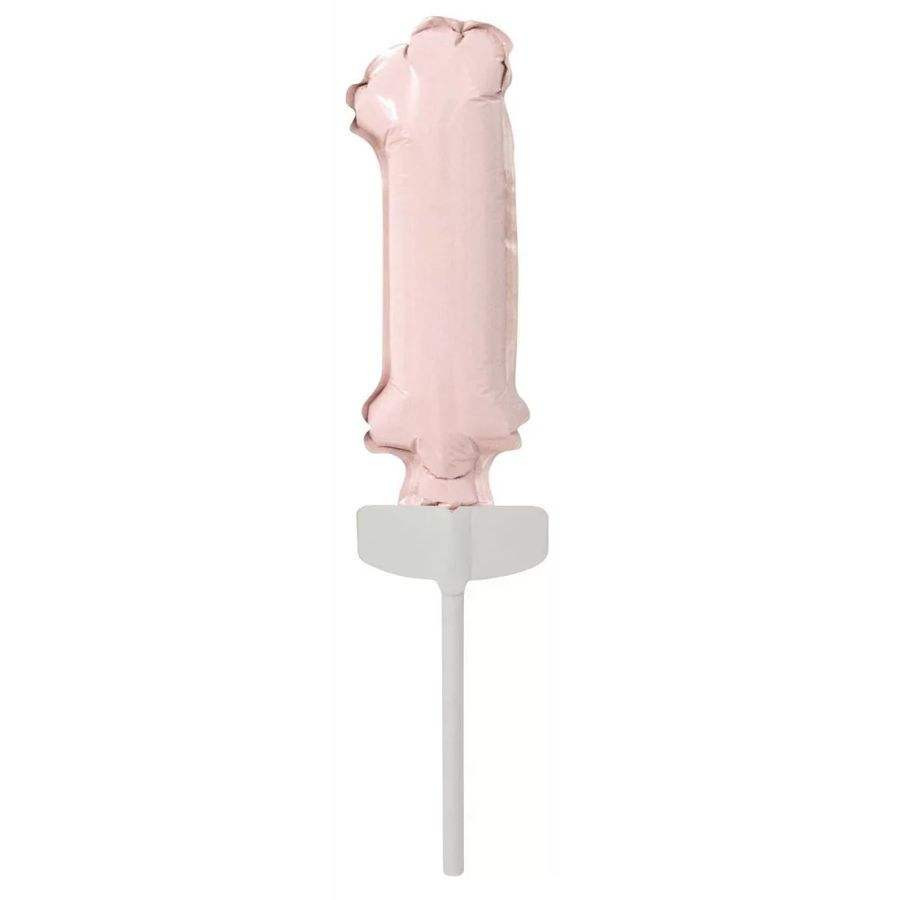 Pastel Pink, Rózsaszín 1-es szám fólia lufi tortára 13 cm
