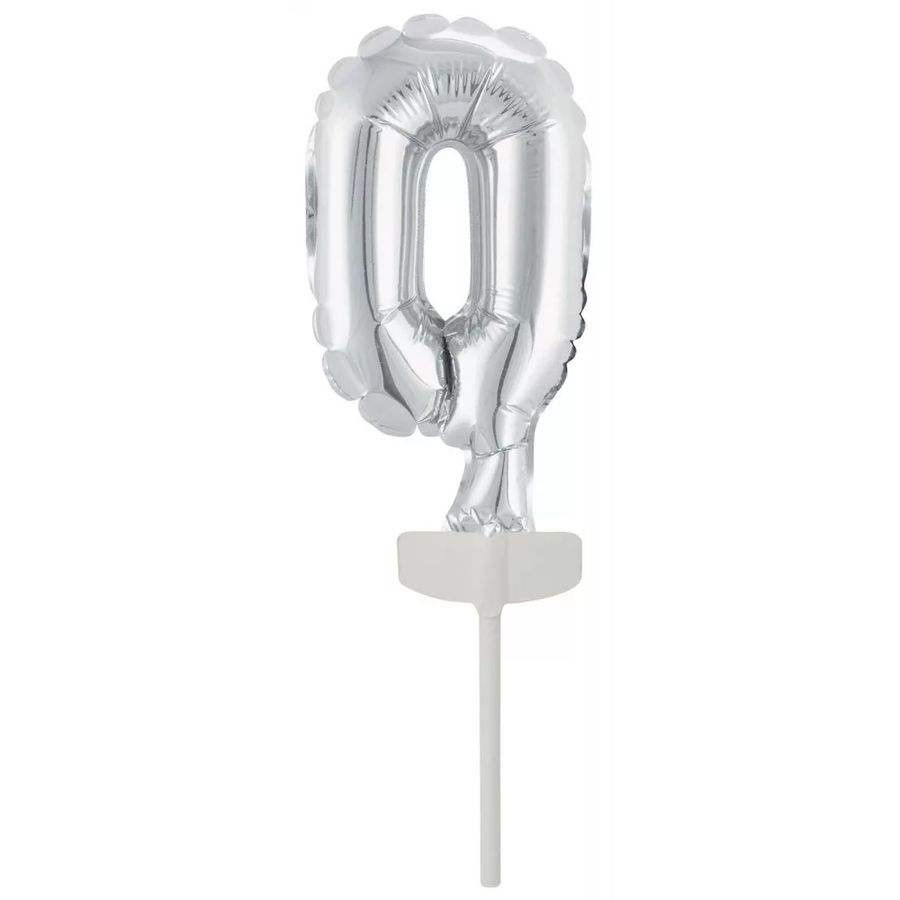 Silver, Ezüst 0-ás szám fólia lufi tortára 13 cm