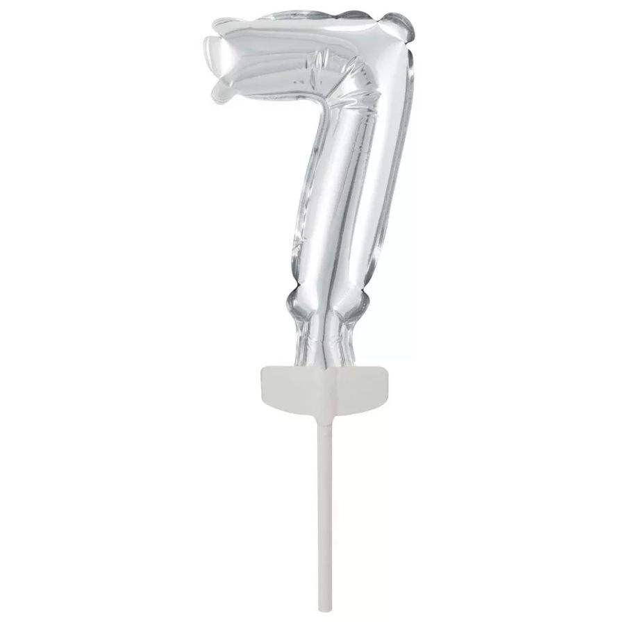 Silver, Ezüst 7-es szám fólia lufi tortára 13 cm