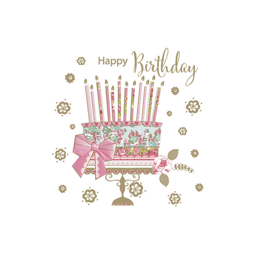 Happy Birthday Cake on Gold Stand szalvéta 20 db-os 33x33 cm