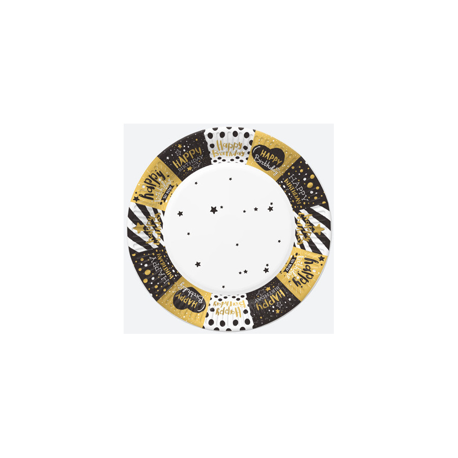 Happy Birthday Golden papírtányér 8 db-os 18 cm