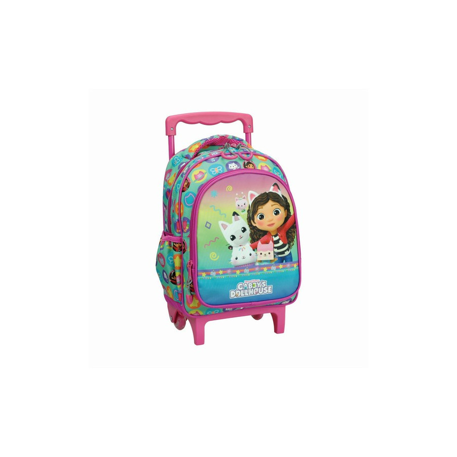 Gabby's Dollhouse, Gabi babaháza gurulós ovis hátizsák, táska Méret: 30x25x15 cmPántjai állíthatóak.Gurulós kialakítás.Kettő nagy cipzáras tárolóval rendelkezik, illetve két oldalsó kis zsebbel.