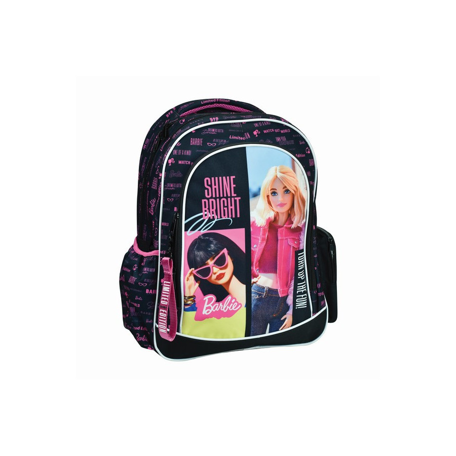 Barbie iskolatáska, táska 42 cmMéret: 42x30x15 cmHárom cipzáras tárolóval rendelkezik.Pántjai állíthatóak.Két oldalsó zseb.