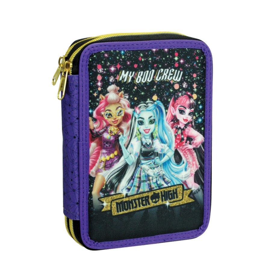 Monster High tolltartó töltött 2 emeletes. Tartalma:- 10 db színes ceruza- 10 db színes filctoll- 2 db grafitceruza- 1 db radír- 1 db vonalzó- 1 db hegyező- 1 db jegyzettömb- 1 db órarend