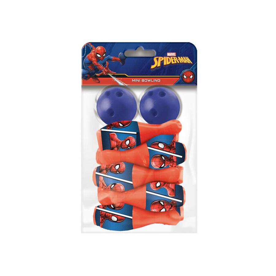 Spiderman, Pókember mini bowling szettAnyaga: műanyagMéret: 16x25cmTartalma:- 10 db bowling bábu- 2 db golyó3 éves kor alatt nem ajánlott!