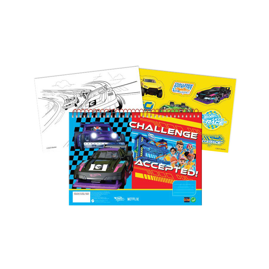 Hot Wheels spirál vázlatfüzet, 40 lapos1 ív matricával és 3 db színezhető képpel!Méret: A/4 (23x33cm)
