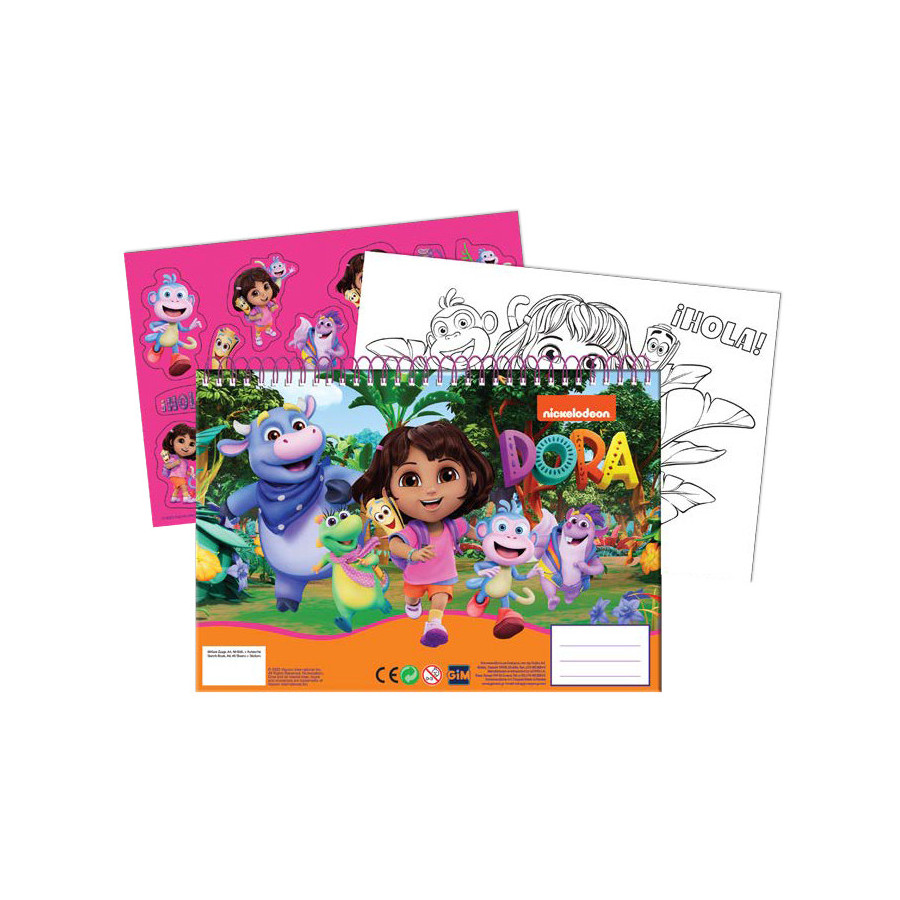 Dora the Explorer, Dóra, a felfedező spirál vázlatfüzet, 40 lapos1 ív matricával és 3 db színezhető képpel!Méret: A/4 (23x33cm)