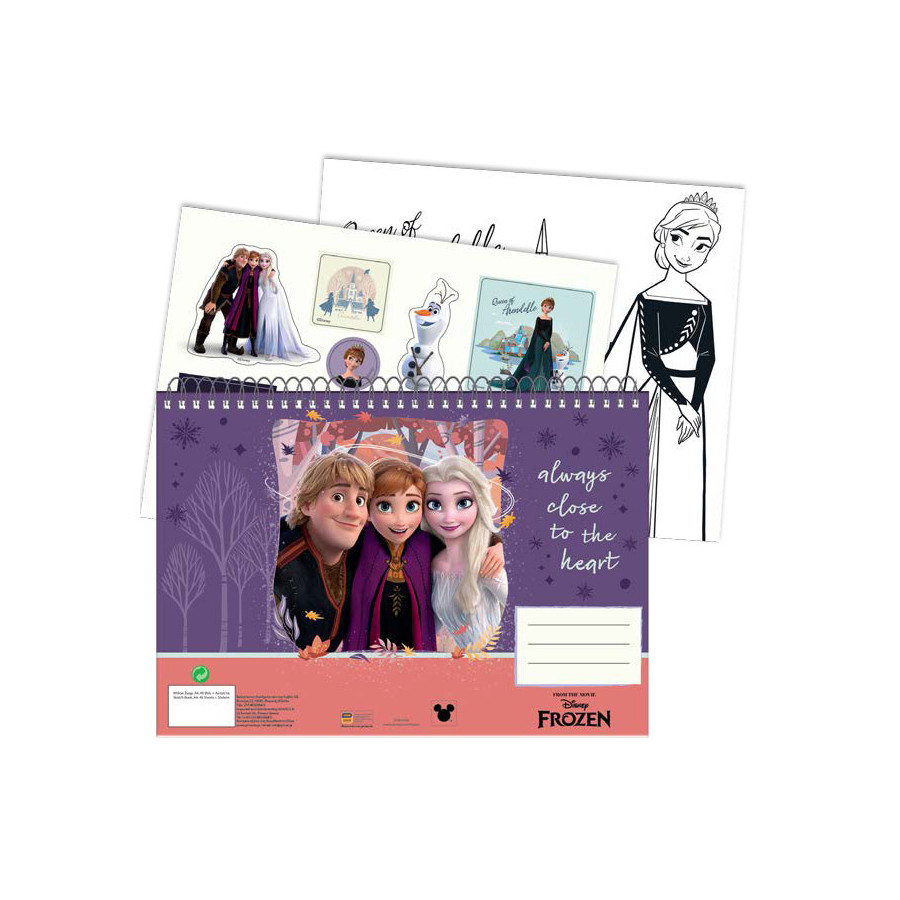 Disney Frozen, Disney Jégvarázs spirál vázlatfüzet, 40 lapos1 ív matricával és 3 db színezhető képpel!Méret: A/4 (23x33cm)